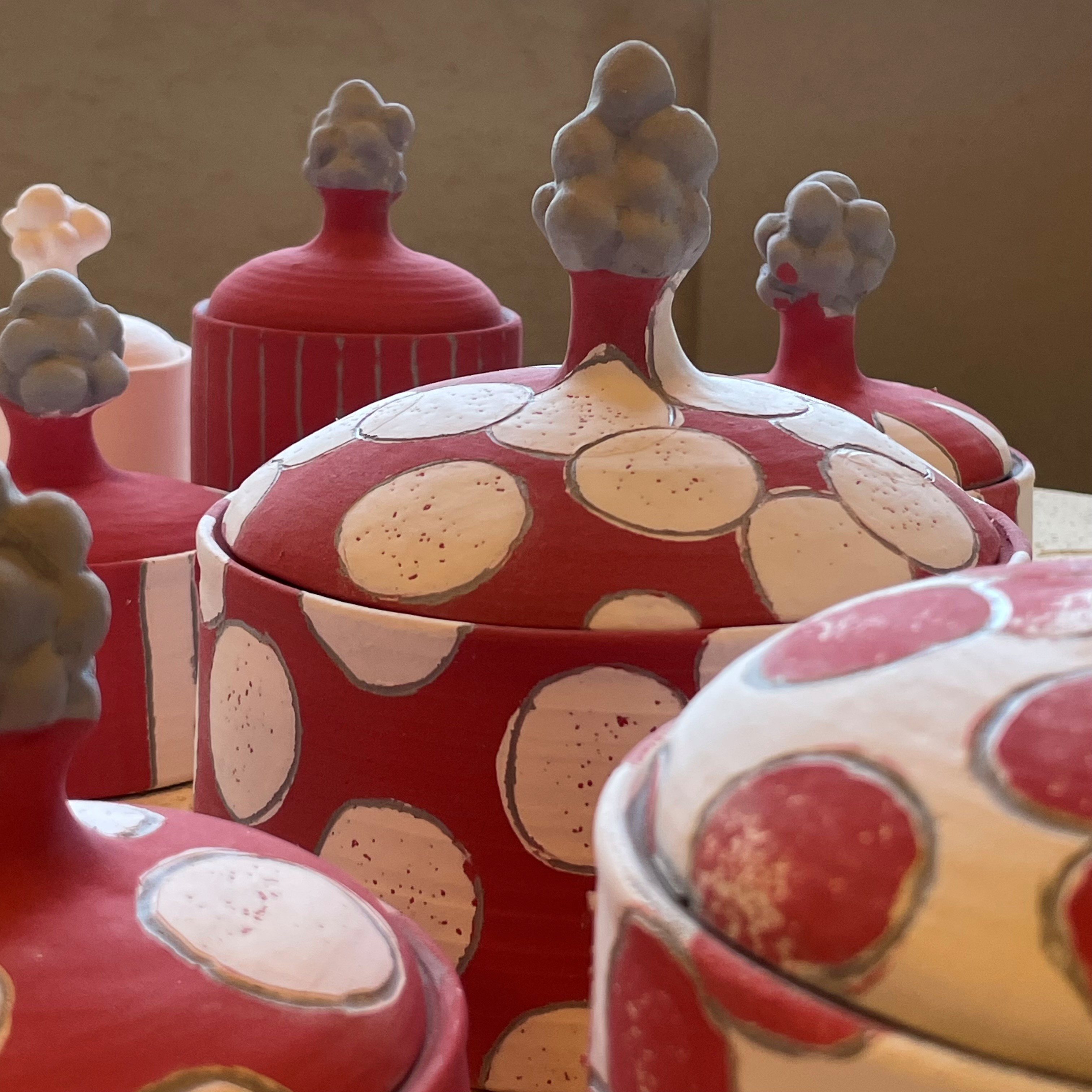 Leran som material är essentiell i mitt skapande då den under arbetsprocessen påverkar både mig och formerna på ett fascinerande och ofta överraskande sätt. Jag arbetar med både bruksgods och skulpturala former under företagsnamnet Lerapan. Återkommande teman i mitt arbete är tårtformer som jag använder som utgångspunkt i ett gestaltande av livets upp- och nedgångar samt ett utforskande av min egen arbetsprocess med skogens former, texturer och växtprocess som samtalspartner.